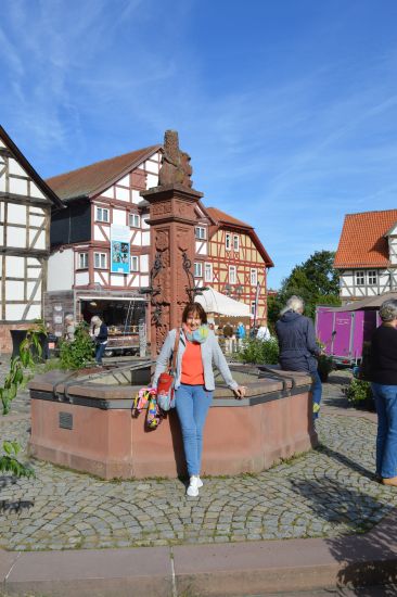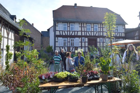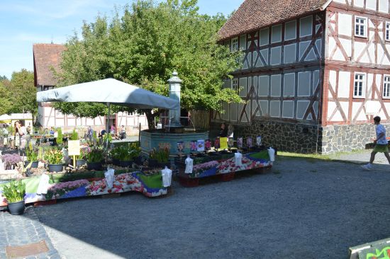 OGV Goldbach besuchte Gartenmarkt im Hessenpark Der Hessenpark in Neu Anspach ist immer einen Besuch wert. In diesem Freilichtmuseum wurden Gebäude aus Hessen aus dem letzten und vorletzten Jahrhundert zusammengetragen. Keine Nachbauten. Die Originale wurden an ihrem ursprünglichen Standort Stein für Stein, Balken für Balken, Ziegel für Ziegel nummeriert, abgebaut und dann im Freilichtmuseum wieder aufgebaut. So bleiben für uns und für die Zukunft nicht nur Burgen und Schlösser erhalten, sondern hier auch Bauernhäuser, Stallungen, Apotheken, Gaststätten, Kapellen, zwei Windmühlen und vieles mehr. Die Gebäude sind in Baugruppen aufgebaut, womit der Eindruck dörflichen Lebens in den einzelnen Regionen Hessens vermittelt werden soll. Ein ganzer Marktplatz mit Dorfbrunnen, Gasthaus, Apotheke, Hotel und Krämerladen empfängt den Besucher gleich am Eingang. Schon von weitem duftet das im Steinofen gebackene Brot der Bäckerei. Zwischen den Dorfgruppen wird das Land für traditionelle landwirtschaftliche Methoden genutzt und es werden alte Pflanzensorten und Tierrassen kultiviert. Es gibt auch einen großen Insektengarten mit Wildsträuchern, Insektenhotel und Sandarium. Der Obst- und Gartenbauverein Goldbach hatte für seinen alljährlichen Tagesausflug aber einen Tag ausgesucht, an dem im Hessenpark viele alte Handwerksberufe ihre Arbeit zeigten und an dem auch ein Gartenmarkt stattfand. Korbflechter zeigten ihr Können. Ein Stockmacher saß an seiner Hobelbank, fertigte seine Produkte und zeigte, dass man damit nicht nur Wandern, sondern auch gymnastische Entspannungs- und Fitnessübungen durchführen konnte. Die Bürstenbinderei hatte geöffnet und eine alte Druckerei bot Führungen an. Seilerei, Blaufärberei, Köhlerei, Schmiede und viele andere alte Handwerkstechniken hatten geöffnet und man konnte deren Produkte kaufen. Enorm war das Angebot für Gärtner. Blumen, Stauden und Sträucher verwandelten die Straßen und Höfe in ein Meer voller Blüten. Sämereien, Knollen oder Zwiebeln wurden an vielen Ständen verkauft. Auch Gartengeräte wurden angeboten. Gartendeko aus Cortenstahl und Keramik. Wer einen Apfelbaum kaufen wollte hatte die Auswahl aus über 100 Sorten, wobei die Baumschule auch alle 100 verschiedenen Äpfel säuberlich auf einem Tisch ausgelegt hatte. Natürlich war auch für das leibliche Wohl gesorgt, wobei einige Angebote aus der ländlichen Küche besonders ins Auge fielen. Wann haben wir zuletzt Rösti mit Apfelbrei gegessen oder Hefeklöße mit Pflaumenmus? Da an diesem Tag auch die Sonne von morgens bis abends vom Himmel schien, war der Ausflug wieder rundum gelungen. |