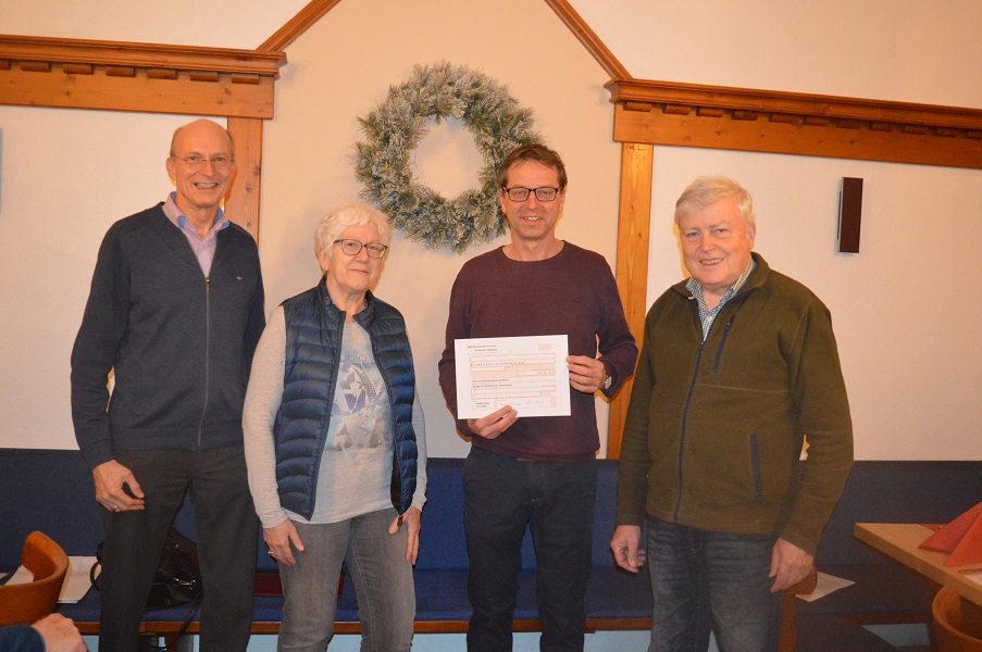 Spendenübergabe (von links): Goldbachs Altbürgermeister Thomas Krimm, 1.